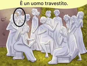 Solo chi ha una vista molto buona può individuare l’essere umano tra queste statue.